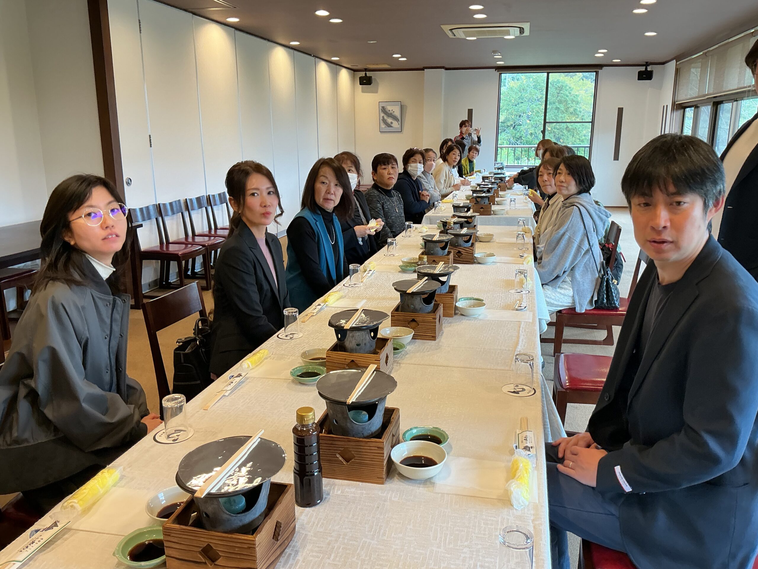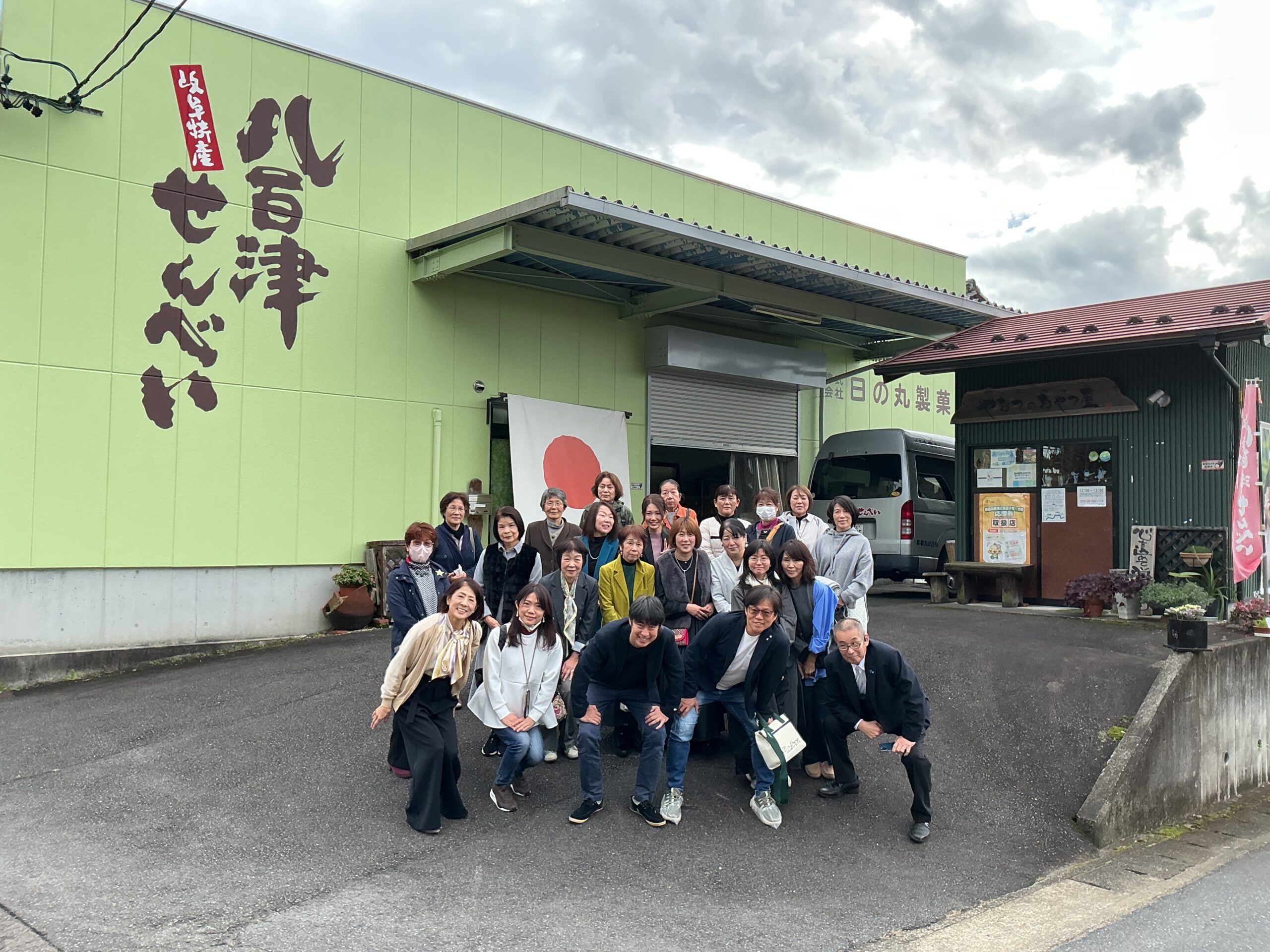 最初の訪問地である「日の丸製菓」では、甘い香りの立ち込める工場内にてせんべいの焼かれる工程を懇切丁寧にご紹介いただき、お昼には坂野支部長お勧めの超人気の有名店「みわ屋」にて、「元祖牛まぶし」に舌鼓を打ちました。午後は「恵那川上屋」でのショッピングに加え、発芽野菜の生産現場である「ちこり村」を視察。自然派の食を「食べる・買う・体験する」を通して、最新の食ビジネスや地域活性化の取り組みを肌で感じる貴重な機会となりました。